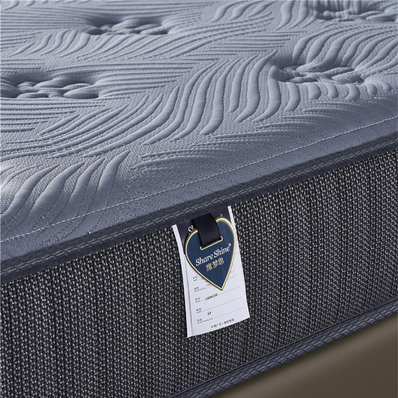 Vores højdensitetsskum- og fjederhybridmadras af høj kvalitet har elegante hjørneetiketter, der forbedrer produktet