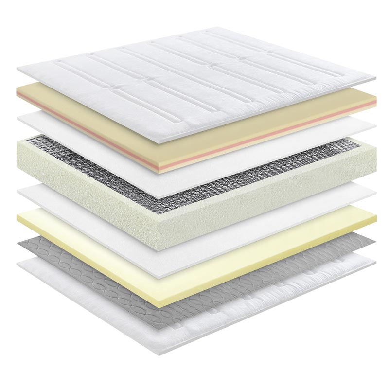 Det øverste komfortlag bruger højspændst memoryskum, der reagerer på kropstemperatur og vægt.